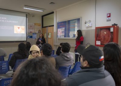 Daniela Hermosilla, matrona del establecimiento, explicó que esta enfermedad involucra un tumor maligno que se localiza en el ovario, ocasionado por un crecimiento anormal de células en dicha zona. Generalmente no presenta síntomas en sus primeras etapas, por lo cual la prevención y el autocuidado son esenciales para evitar mortales consecuencias.