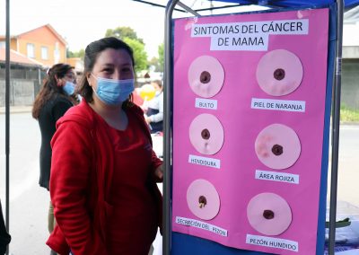 Dentro de las actividades de concientización para remarcar estos importantes elementos se cuentan la participación de la Dirección Comunal de Salud en las ferias efectuadas este mes por Prodemu y la Municipalidad de Los Ángeles –ambas en la Plaza de Armas-, la instalación de stands informativos en CESFAM y la acción llevada a cabo este miércoles por el CECOSF Rural El Peral, denominada “Cuídate y tócate antes de que te toque”.