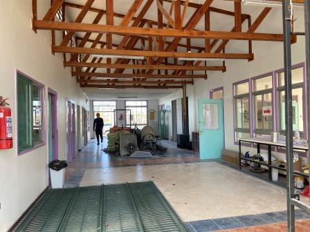 La intervención que presenta un 80% de avance, contempla adecuaciones de recintos reposición de revestimientos y puertas, adecuación servicio higiénico Universal, sala de docentes reposición de revestimientos de muros, cielos, mejora en confort térmico e instalación de equipos de aire acondicionado; además considera mejoras exteriores en cierres perimetrales y mitigación de patios, según exigencia JUNJI de privacidad y seguridad, reposición de pavimentos en mal estado, rampas, pasamanos, demarcación y adecuación en vías de evacuación de salas de actividades.
