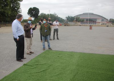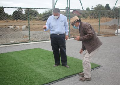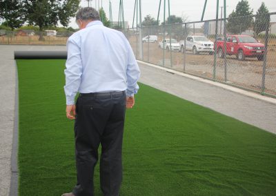 El director de Medioambiente, Edson Pinto, explicó que «se trata de una cancha de 94,4 metros de largo por 58 metros de ancho. El perfil se compondrá de seis capas, la que está constituida por césped artificial, caucho reciclado, arena de sílice, un soporte para el impacto, una membrana asfáltica y grava».