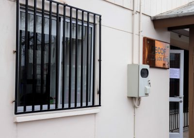 Dentro de los múltiples trabajos ejecutados están el revestimiento del frontón de la fachada y el recambio de las protecciones metálicas de ventanas, puertas de acceso frontal y posterior; y el de las protecciones de las puertas por un portón de corredera.