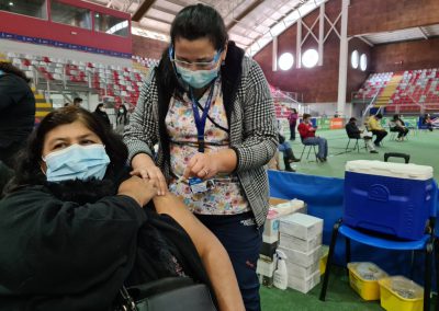 En total se inocularon 761 dosis, 157 de ellas correspondientes a influenza y las 604 restantes a Covid-19. De estas últimas, 386 fueron Sinovac, 152 Cansino, 36 Pfizer y 30 AstraZeneca.