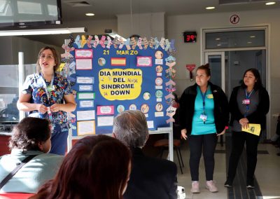 “Hicimos una educación en sala de espera para poder concientizar a las personas acerca de la inclusión de las personas, en este caso, con Síndrome de Down; explicar en qué consiste esta condición –que es una condición, no una enfermedad ya que no tiene cura ni tratamiento, las personas viven toda su vida con esta condición-, tratar de hacer a las personas más inclusivas a lo largo del ciclo vital, desde que son muy pequeños hasta su vida adulta mayor. Y, también, la importancia de la estimulación temprana en estos niños cuando nacen con esta condición y las atenciones a las que tienen acceso en el centro de salud y en el CDT (Centro de Diagnóstico Terapéutico)”.