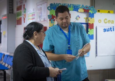 En el CESFAM Sur “Dr. Pablo Murúa Barbenza” la conmemoración del Día mundial para la concientización del Trastorno del Espectro Autista (TEA) consistió en la instalación de un stand informativo, en el cual una terapeuta ocupacional y un fonoaudiólogo interactuaron con los usuarios y funcionarios del establecimiento, educándoles en la temática a través de la entrega de información y actividades didácticas.