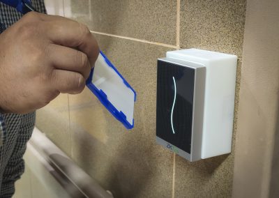 La iniciativa regula el ingreso a las áreas administrativas y a los módulos de atención, a los cuales sólo se puede entrar utilizando una tarjeta vinculada a cada funcionario. Ésta es reconocida por un dispositivo lector, permitiendo la apertura y el paso por cada pórtico, detalló Egon Núñez, ingeniero en telecomunicaciones del Departamento de Seguridad y Telecomunicaciones de la Dirección Comunal de Salud.