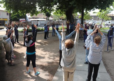 “Realizamos trabajo de fortalecimiento muscular de extremidades inferiores, también trabajamos el equilibrio y también trabajamos lo que es la movilidad de nuestras extremidades superiores, los brazos. Ésos son los 3 fundamentales dentro de la actividad que tenemos planificada en cada caminata”.