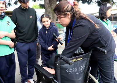 “Los profesores han dicho que ha sido como muy efectiva esta actividad, que los compañeros han logrado empatizar o ponerse en el lugar, o han visto como un cambio; porque previo a esto siempre se les hace como una mini charla o taller preguntándoles qué entienden por discapacidad, qué lo que es la inclusión para ellos o cómo puede ser una persona con discapacidad –y cómo actuar-, ésa es la idea. Esto no se ha hecho solamente en los establecimientos para los alumnos o alumnas, sino también va dirigido a los profesores”.