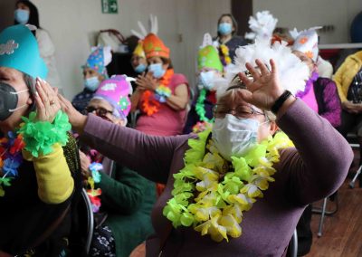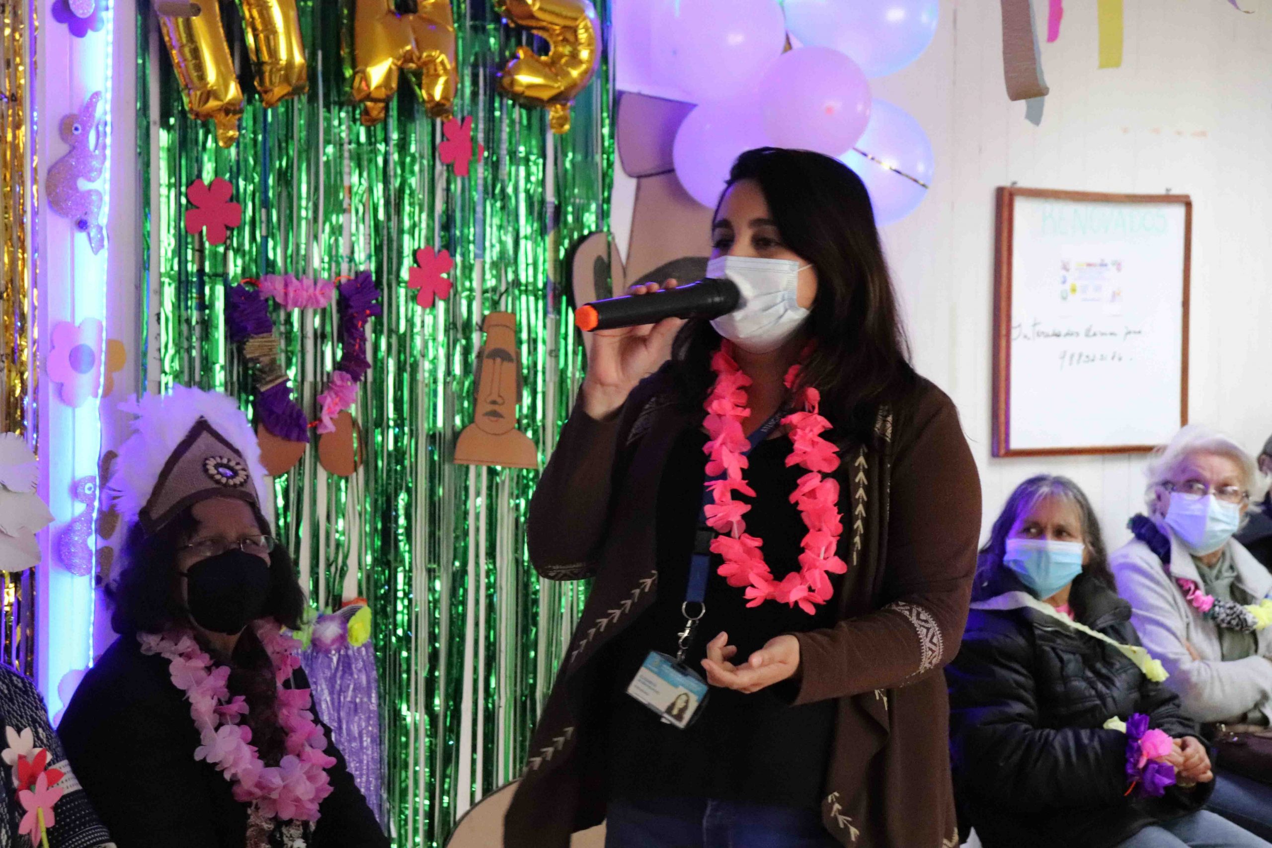 Esta vez la celebración estuvo ambientada en la Isla de Pascua, por lo cual las y los usuarios que son parte de esta iniciativa llegaron con disfraces y distintivos al estilo «Rapa Nui», dando vida a una jornada llena de música, baile y alegría, destacó Elizabeth Acuña, kinesióloga del CESFAM Dos de Septiembre.