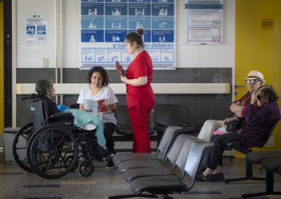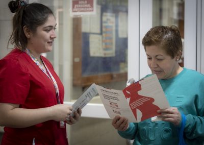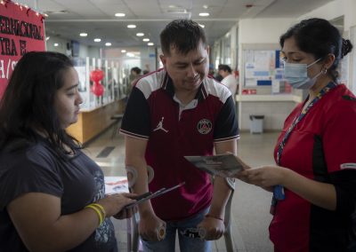 De manera similar a lo hecho en el Sur, en el CESFAM Entre Ríos, una interna de la carrera de Obstetricia distribuyó información a las usuarias y usuarios, mientras que las matronas de este recinto de atención primaria tomaron test rápidos de VIH a quienes lo solicitaron.
