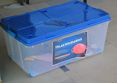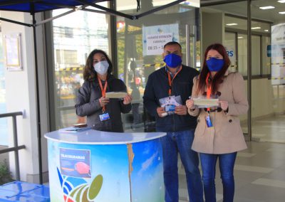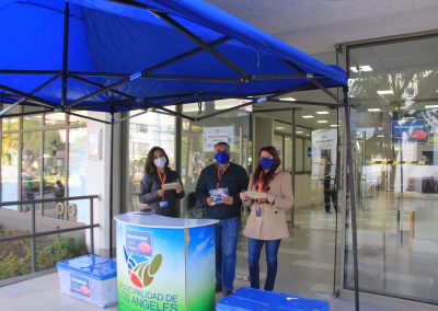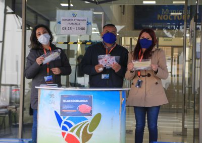 Instalados en el frontis de la Municipalidad de Los Ángeles está un equipo de Ce Mujer, quienes reciben las donaciones de mascarillas en el marco de la campaña “Telas Solidarias”.
