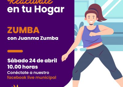 La oficina de Recreación tampoco se queda atrás y esta semana trae Zumba, liderada por Juanma Zumba, que buscará levantar con todo el ritmo durante la mañana de este sábado a partir de las 10 de la mañana, lo que podrás ver también a través de Facebook.