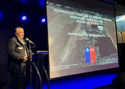 El edil compartió estas declaraciones en el contexto de la primera jornada de diagnóstico y análisis de demanda de pasajeros 2025-2050 para el terminal aéreo, que se desarrolló con autoridades, dirigentes y vecinos de Los Ángeles. Fue la primera de tres actividades que considera participación ciudadana, en el marco de un estudio básico encargado por la Dirección de Aeropuertos del Ministerio de Obras Públicas a Aristo Consultores SpA.