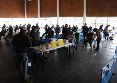 Funcionarios municipales y rezagados de la primera y segunda dosis de la vacuna Sinovac –en total 1.059 personas- fueron inmunizados en el Polideportivo de Los Ángeles, este sábado y domingo, dando así continuidad al proceso vacunatorio Covid-19 en nuestra comuna.