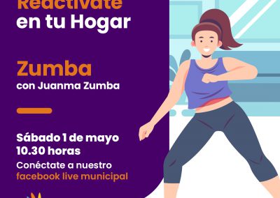 A su vez, este sábado en «Reactívate en tu hogar» de la Oficina de Recreación, será Juanma Zumba quien también nos hará movernos con el baile entretenido, a partir de las 10.30 horas.