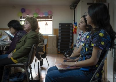 “Bueno, yo trabajo con varios adultos mayores, con varios grupos -15 talleres tengo-, así que para mí es muy gratificante trabajar con adultos mayores porque son empeñosos, son responsables, están cuando uno les pide que estén. Así que, para mí, es fabuloso estar con ellos, siempre”.