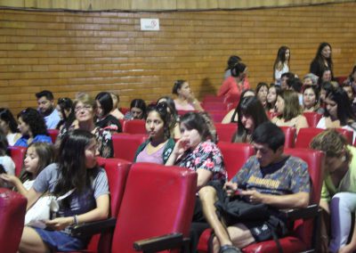 Ante un teatro municipal repleto, la actriz Javiera Contador realizó una charla de vida en Los Ángeles el pasado sábado.