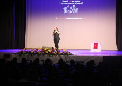 La conexión con el público se produjo de entrada y a base de experiencias personales y humor logró generar un momento grato con los asistentes.