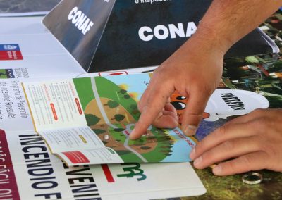 Por otra parte, se despliegan talleres y capacitaciones a las organizaciones comunitarias insertas en zonas de interfaz, especialmente en planes de emergencia, vías de evacuación, y una permanente coordinación y preparación con ellos, en caso de desastre.
