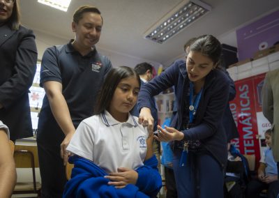 “En la región del Biobío se proyecta inmunizar a 870 mil personas pertenecientes a los grupos objetivo. A la fecha ya se han vacunado a 174 mil personas en la región, esto es un 20% de cobertura, mientras que la provincia de Biobío encabeza el proceso de inoculación, con un 21,4%. Es importante destacar que en nuestra región deben inmunizarse más de 100 mil niños, niñas y adolescentes pertenecientes al grupo de escolares, por eso llegamos a esta escuela para reforzar la campaña”, señaló el Seremi de Salud, Eduardo Barra.