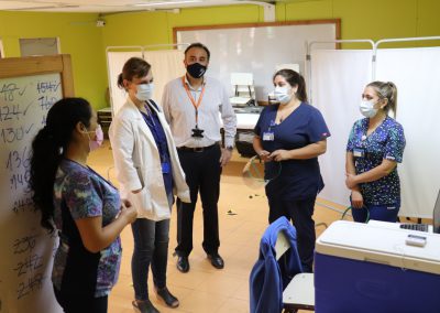 Marta Aravena, directora comunal de Salud de Los Ángeles, detalló por su parte que “tenemos 12 puntos para mejorar el acceso a la vacuna a todas las personas que lo requieran, en estas 2 primeras semanas, que van a ser a los mayores de 71 años. Por lo tanto, invitamos a la comunidad a informarse de estos puntos, que son varios y que son escuelas municipales además de este Polideportivo y del edificio Mac – Iver que se encuentra en pleno centro de Los Ángeles”.