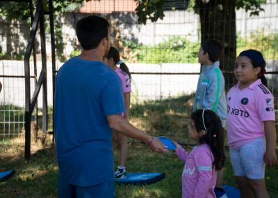 “Entonces lo quisimos cambiar a taller deportivo o iniciación deportiva, donde a los niños nosotros les enseñamos a hacer ejercicios básicos, activación esquelético-muscular y, también, iniciación a algún deporte. Hemos trabajado como en ‘la matanza’, hemos trabajado fundamentos básicos del fútbol, también del básquetbol. Como tenemos balones e implementos, podemos trabajar en base a lo que tenemos como implementación”.
