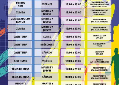 Así, Deportes tiene una amplia gama de talleres que efectuará durante los próximos meses, que van desde calistenia, entrenamientos funcionales, fútbol, hasta el tenis de mesa o el deporte inclusivo. Para inscribirse sólo deben enviar un correo entrenamientos@losangeles.cl