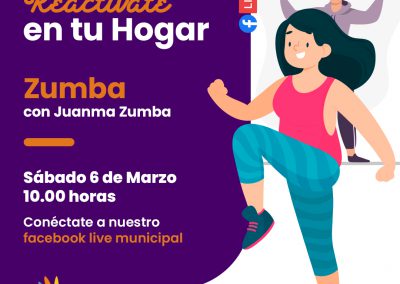 A su vez, la oficina de Recreación hará lo propio, pero este sábado con “Reactivate en tu hogar” iniciativa que también tendrá zumba a contar de las 10 de la mañana.
