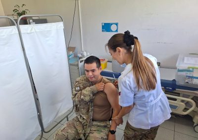 Cynthia Barras, enfermera de la Dirección Comunal de Salud, añadió que “para nosotros es muy importante la coordinación que estamos realizando con la Seremi de Salud y con el destacamento de montaña N° 17 Los Ángeles, para lo cual estamos realizando un equipo de vacunación mixto, conformado por funcionarios de vacunatorio del CESFAM Norte y personal de salud del destacamento de montaña, para realizar una serie de operativos de vacunación contra Covid-19, tanto esta semana como la próxima”.