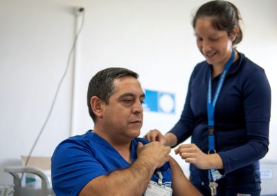 Tras el anuncio del Ministerio de Salud de ampliar la población a inmunizar con la vacuna monovalente contra el Covid-19, extendiéndola a nuevos grupos de riesgo, en la capital provincial de Biobío se llevó a cabo un operativo de vacunación dirigido al personal del destacamento de montaña N°17, actividad desarrollada conjuntamente por la delegación provincial de la Seremi de Salud Biobío y la Dirección Comunal de Salud de Los Ángeles. El objetivo es vacunar, entre este miércoles y jueves, a más de 400 uniformados.