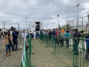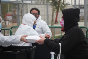 La iniciativa liderada por la Municipalidad de Los Ángeles pretende llegar con 31.000 colaciones durante un mes a los puntos que se han visto mayormente afectados por las consecuencias económicas de la pandemia, esto en coordinación de las juntas de vecinos de cada sector, así lo señaló el Alcalde Esteban Krause Salazar, en el lanzamiento oficial del camión solidario, que se desarrolló en las inmediaciones del Parque Urbano Estero Quilque, donde permaneció durante el fin de semana, para trasladarse hoy a la plaza de Villa Génesis y proseguir los próximos días en otros puntos de la comuna.