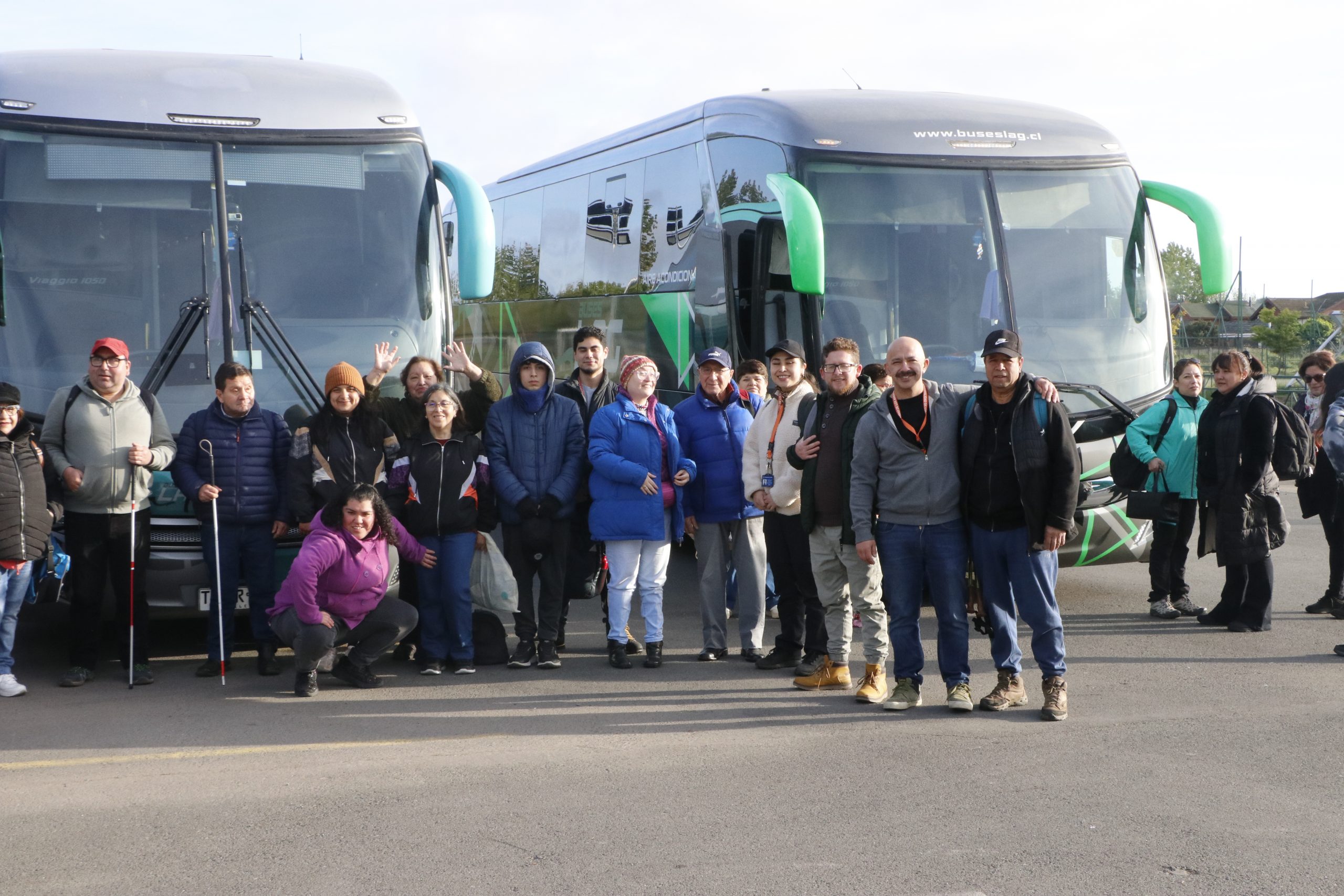 Desde temprano buses con más de 80 personas salieron desde el Polideportivo con dirección a la Región de la Araucanía y es que, como de costumbre, personas con discapacidad y sus cuidadores disfrutaron de un trekking inclusivo.