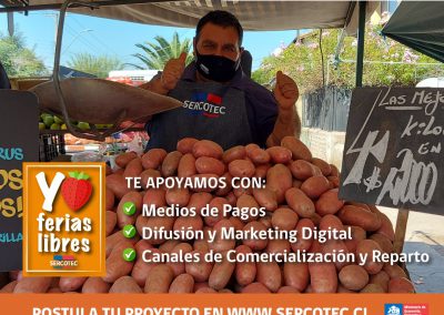 Hasta este 14 de junio se mantendrán abiertas las postulaciones al “Fondo para el Desarrollo de Ferias Libres” de Sercotec, subsidio no reembolsable que busca fortalecer la modernización asociatividad, gestión e innovación de las ferias.