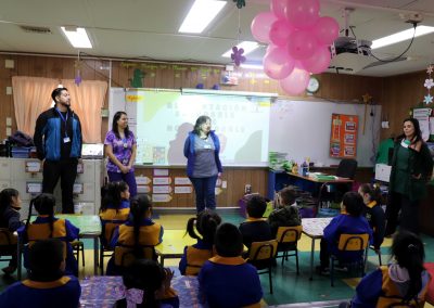 Profesionales del CECOSF Las Azaleas y del CESFAM Norte de Los Ángeles estuvieron, en esta jornada, en las escuelas Pedro Ruiz Aldea y 11 de Septiembre para difundir la importancia de la alimentación saludable entre los preescolares de ambos establecimientos educacionales municipales.