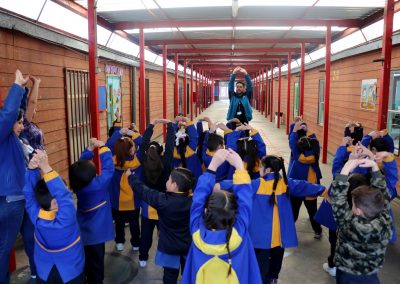 La alimentación saludable siempre debe ir de la mano la actividad física, ya que ésta ayuda a regular nuestro peso, fortalece músculos y huesos, nos proporciona energía, favorece nuestra salud mental y, en definitiva, es un elemento protector frente a distintas enfermedades en el corto, mediano y largo plazo. Por lo mismo, en esta actividad, el profesor de Educación Física José Ignacio Gallegos desarrolló una sesión deportiva junto a los menores, la cual incluyó un circuito con distintos ejercicios.