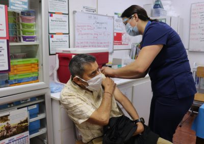 Los ELEAM visitados fueron el Hogar de Cristo “San Juan”, Hogar “Don Orione”, Hogar Santa Fe “María Vicenta Poloni”, “D’Mercedes”, “Sweet Home”, “Los Robles, “Jardines de San Juan” y “María Gabriela”, alcanzando a más de 400 personas, entre residentes y funcionarios, detalló Marta Aravena, quien destacó la importancia de esta temprana inmunización.